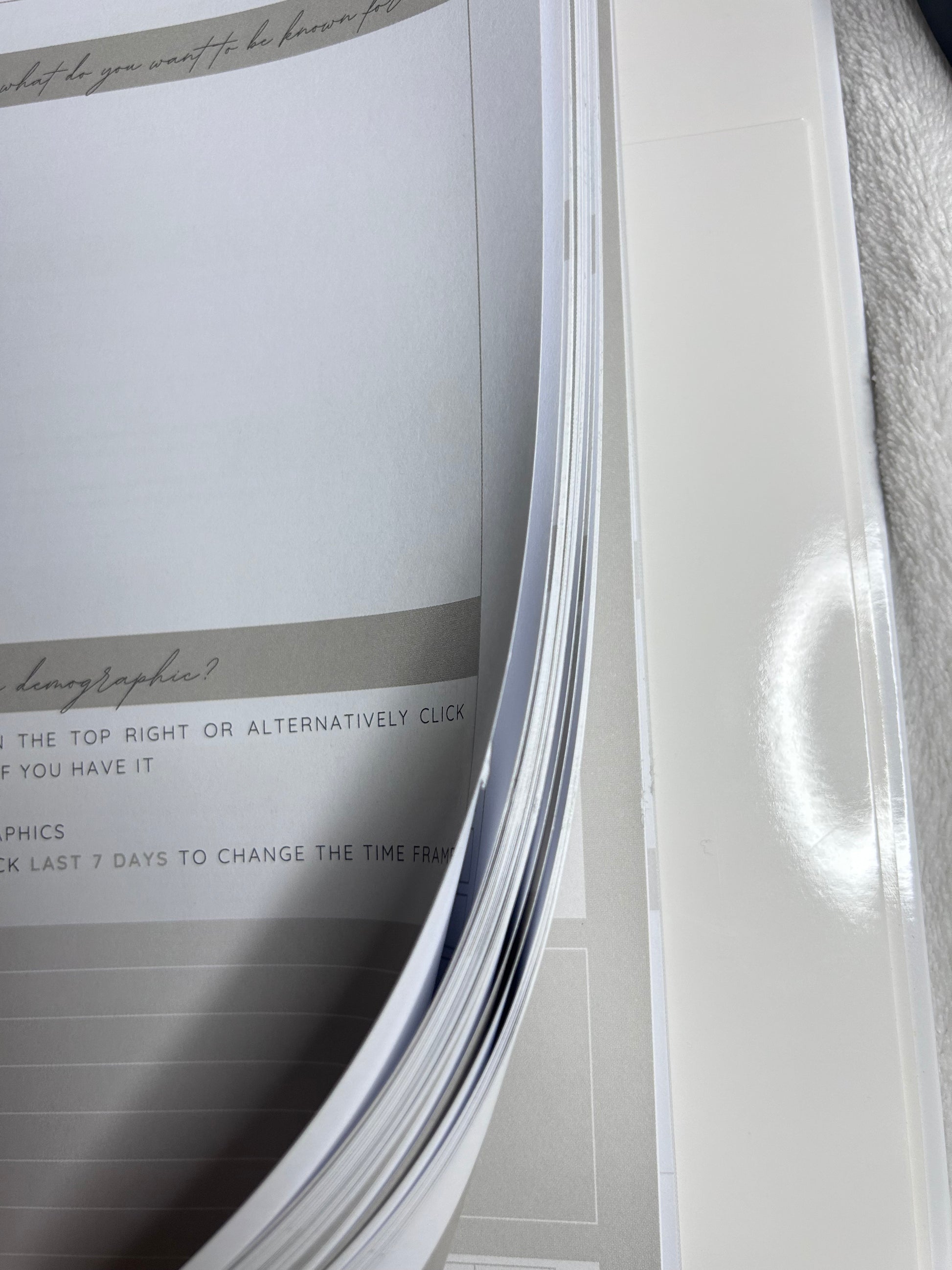 yearly reflection, profile status, my social media, goal action plan, vision board, public holidays & school terms, monthly overview, monthly calendar, weekly calendar, app portfolio, hashtag bank, feed organiser, content ideas, brain dump, content planners, collaborations, reaching out, start-up costs, earnings, analytics, notes.